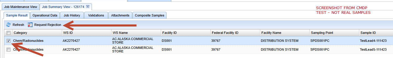 If for some reason you cannot submit the request directly in CMDP, please email the DEC CMDP helpdesk (dec.cmdpsupport@alaska.gov) with teh sample information (CMDP Job ID#, Lab Sample ID#, Sample Date) and a brief description on why you are requesting removal.