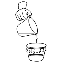 - Add and dissolve one heaping teaspoon of high-test granular calcium hypochlorite (approximately ¼ ounce) for each two gallons of water or 5 milliliters (approximately 7 grams) per 7.5 liters of water. The mixture will produce a stock chlorine solution of approximately 500 milligrams per liter, since the calcium hypochlorite has available chlorine equal to 70 percent of its weight. To disinfect water, add the chlorine solution in the ratio of one part of chlorine solution to each 100 parts of water to be treated. This is roughly equal to adding 1 pint (16 ounces) of stock chlorine to each 12.5 gallons of water or approximately ½ liter to 50 liters of water to be disinfected. To remove any objectionable chlorine odor, aerate the disinfected water by pouring it back and forth from one clean container to another.