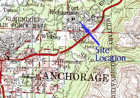 Fort Richardson Army Post is located approximately seven miles east of downtown Anchorage. It is bordered on the west by Elmendorf Air Force Base and on the north by training areas, Eagle Bay and the Knik Arm of Cook Inlet. On the eastern border is the Glenn Highway, and to the south are recreational and training areas, and Ship Creek. The southern and eastern boundaries consist of undeveloped lands and Chugach State Park.