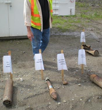 Some of the discarded military munitions unearthed at the Taku Gardens site are shown in this June 2008 photo. (DEC photo)