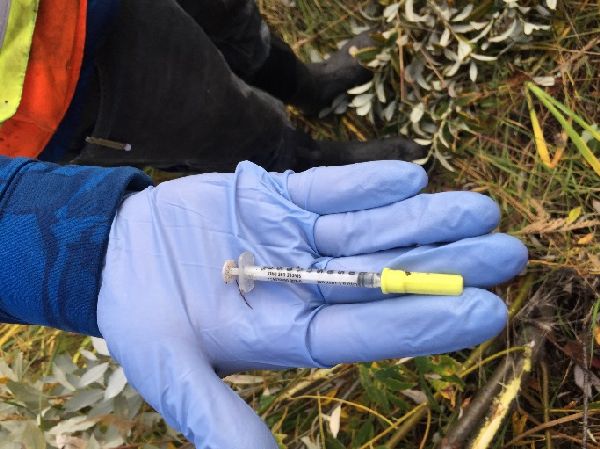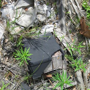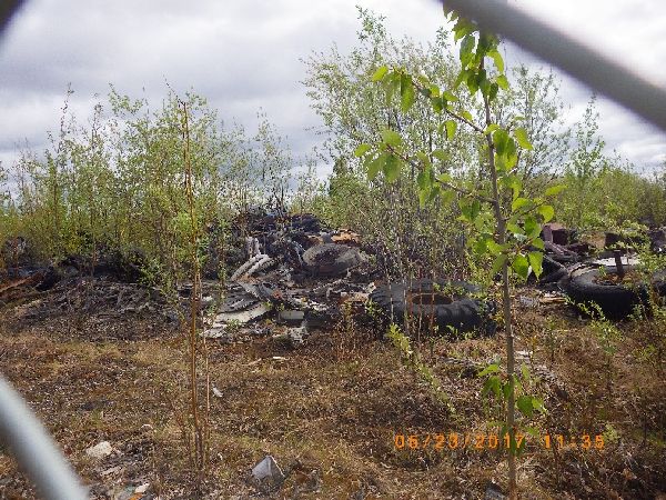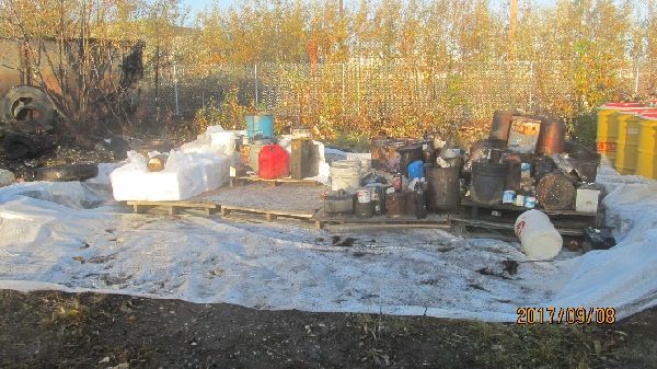 In July and August 2017, DEC returned to the Miller property for additional assessment, in conjunction with the Fairbanks North Star Borough (FNSB) Hazardous Materials team. In addition to leaking drums, DEC observed large piles of debris that included hazardous materials such as broken and leaking batteries, partially full gasoline containers, used oil filters, leaking railcars filled with asphalt, asbestos, gas cylinders, and broken ceramic insulators believed to originate from transformers.