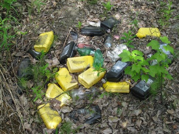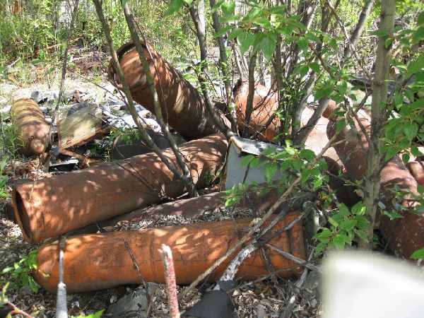 Public hazards on the property also include the dilapidated building structures. Buildings used for storage and shop activities currently contain hazardous materials such as mercury lamps, burned batteries, hypodermic needles, used oil, and other debris. DEC observed evidence of transients and drug users using the buildings for temporary shelter, and neighbors report the shop buildings once housed an illegal drug lab.
