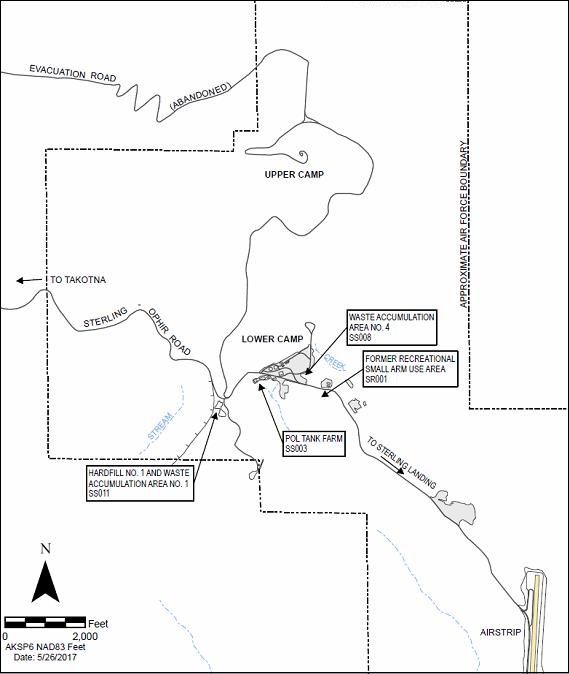 - 2011: The Air Force and ADEC signed a record of decision for SS002 (Sterling Landing). The selected remedy for soil and groundwater contamination is institutional controls (ICs) and long-term monitoring (LTM) for contaminated groundwater. After landfarming in 2007, 2009 and 3 rounds of treatment of the excavated soils in 2010, petroleum contamination remains above cleanup levels.