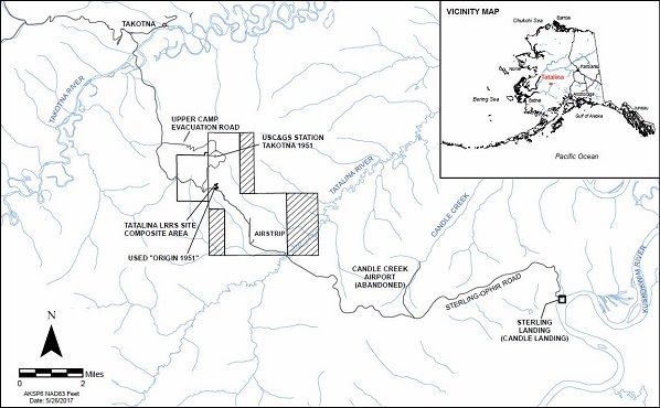 Tatalina Long Range Radar Station (LRRS) is located 240 miles northwest of Anchorage on a 4,968-acre site, and is accessible only by air and water. The LRRS is divided into Upper and Lower Camps. The Upper Camp houses radar equipment and is located at the top of Tokotna Mountain. The Lower Camp has a runway and provides support to the Upper Camp from a composite facility constructed in 1984 which provides housing and industrial operations. Unlined landfills have received a variety of hazardous wastes, including lead acid batteries and waste solvents. Shop wastes, solvents and paint thinners, have been disposed of in an unlined trench.