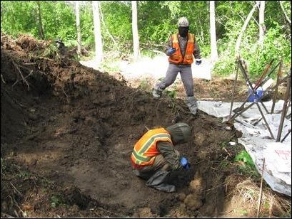 Excavation BH-21 is excavated and being sampled. View looking West June 26, 2016 (courtesy: Air Force Civil Engineering Center 2017)