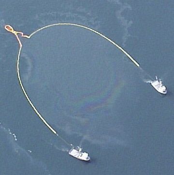 ↑ On-water oil recovery efforts from a fishing vessel that sank in Prince William Sound on August 4, 2001 with 35,000 gallons of diesel fuel and several hundred gallons of lube and hydraulic oil on board.