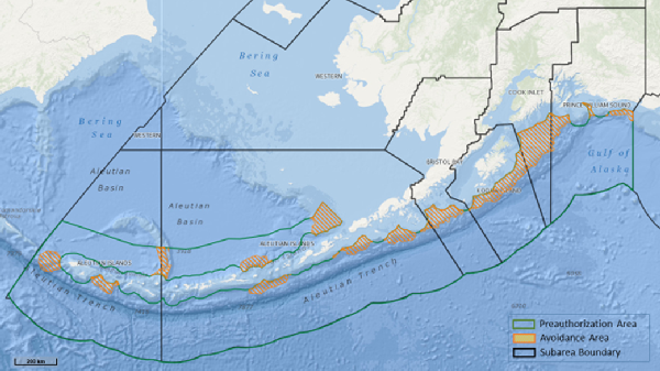 - The following types of information were analyzed to determine potential vulnerability to dispersed oil before avoidance areas were determined: Essential Fish Habitat; Habitat Areas of Particular Concern (HAPC); seasonality of primary and secondary productivity; fishery stock assessments and commercial fishery harvest data; short-tailed albatross (endangered species) concentration areas and distribution; Audubon’s Important Bird Areas; Endangered Species Act-listed threatened and endangered species and their critical habitat; cetacean Biologically Important Areas in Alaska1; physical oceanography parameters (e.g., bathymetry, sediment loading, salinity gradients, kinetic energy and mixing rates, settling rates, benches, troughs, navigational entrances, etc.); hydrographic flow patterns (e.g., lateral, vertical, stratification, upwelling, and seasonal variations); areas of public concern; and other scientific information.