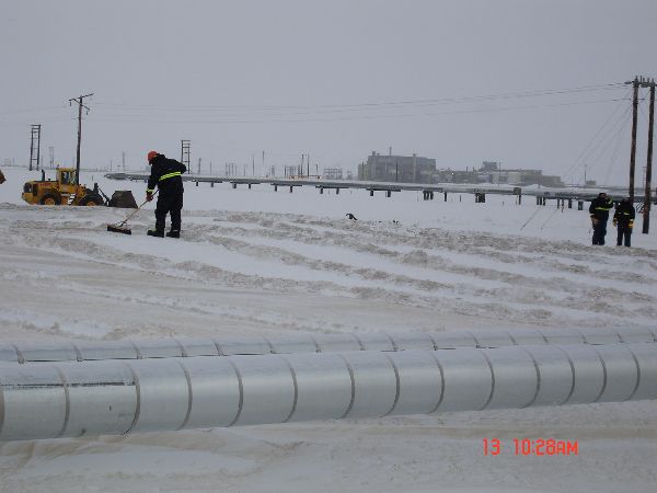 - The source of the spill is a weld failure in an artificial lift line that transports pressurized natural gas to Drill Site 14 for injection.