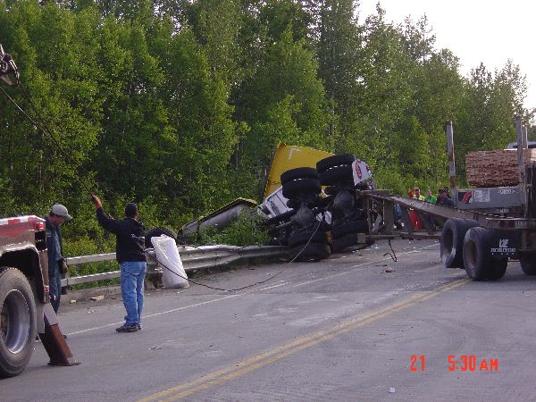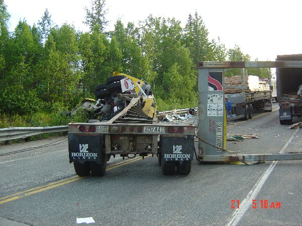 - An estimated 130 gallons of diesel fuel, and small undetermined amounts of engine fluids, oil, and antifreeze were spilled.