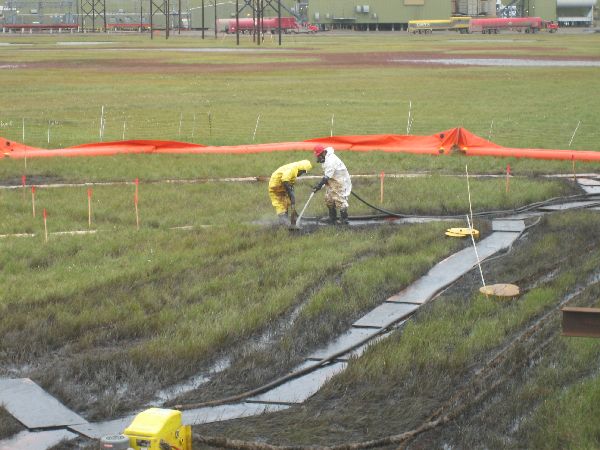 - BPXA initially reported that an estimated 4 -5 barrels (168 – 210 gallons) of crude oil was released to the tundra. BPXA, in agreement with ADEC, has estimated a final spill volume of 23 barrels (966 gallons) spilled to tundra and 176 barrels (7,392 gallons) contained and recovered from the “fasttanks”.