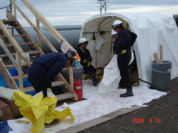 - In response to recently gathered inspection data, BPXA began shutting down the line at 6:30 AM August 6, 2006. During the shutdown operation, the spill was discovered by Alaska Clean Seas (ACS) Spill Response Team (SRT) at 8:40 AM, August 6, 2006. The spill was reported to ADEC by the State Troopers at 9:10 AM, August 6, 2006.