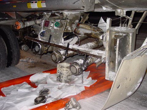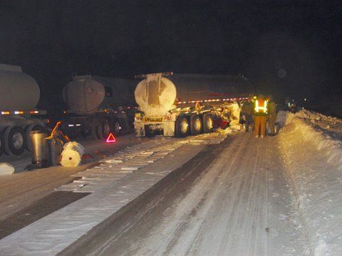 - The tractor trailer lost traction on a steep hill and jack-knifed, damaging the fuel manifold on the pup-tank.