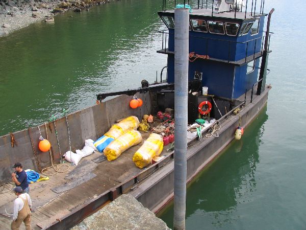 - A small quantity of oil discharged immediately after the vessel sank, but the amount of product spilled is unknown at this time. Approximately 1200 gallons of diesel fuel was on board the vessel as well as unknown quantities of lubricating and hydraulic oils.