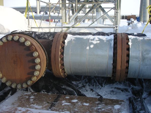 - A 1/8” hole, located at the 10 o’clock position on the flow line was determined to be caused by external corrosion.