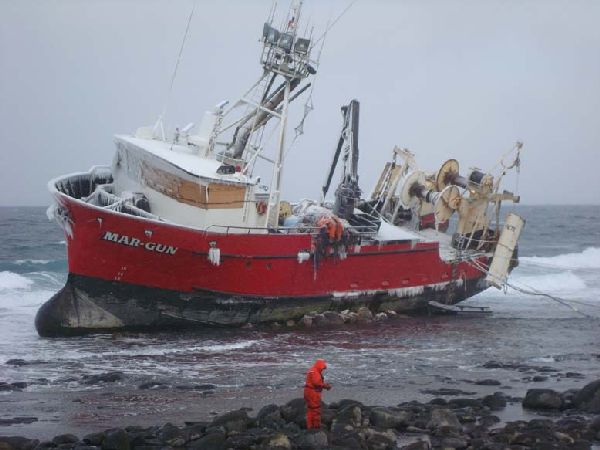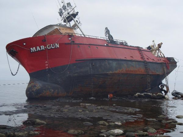 - The U.S. Coast Guard (USCG) Sector Anchorage notified ADEC at 6:15 AM on March 5, 2009 that the F/V Mar-Gun, a 112-foot trawl vessel, had run aground with five (5) people on board and was taking on water.
