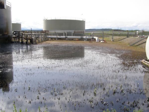 - Alaska North Slope Crude. Alyeska Pipeline Service Company (APSC) estimated 108,360 gallons (2,580 barrels) of oil were released to secondary containment.