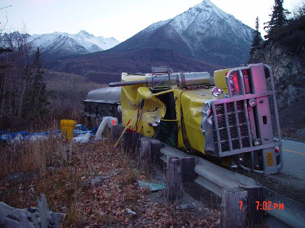 - The Alaska State Troopers notified ADEC at 4:14 PM on Thursday, October 7, 2010, that a tanker truck had rolled on the Glenn Highway.