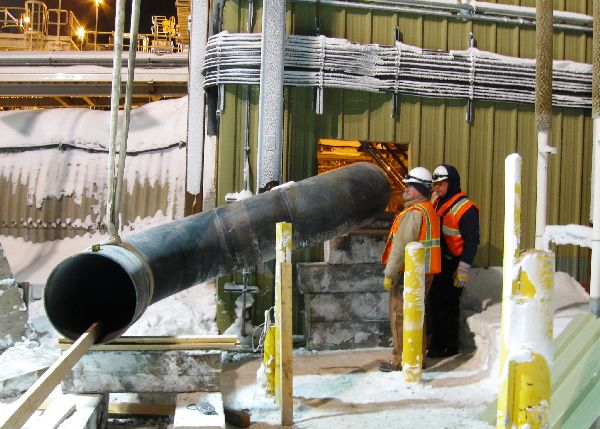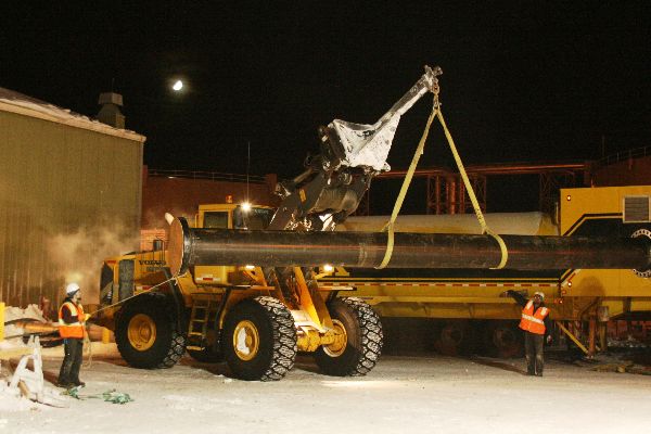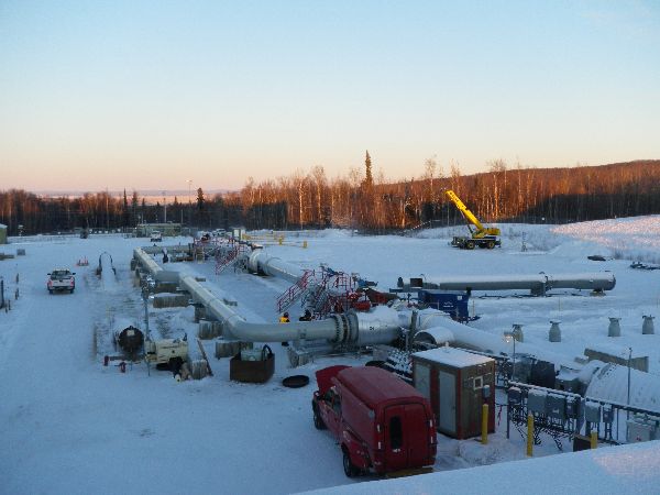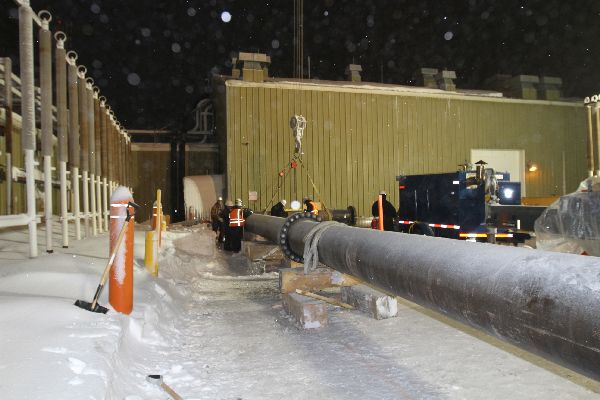 - Bypass pipeline materials are being fabricated in Fairbanks and flown to the North Slope for delivery at Pump Station 1. Workers at the pump station have removed snow and placed scaffolding along the bypass pipeline route in preparation for construction.