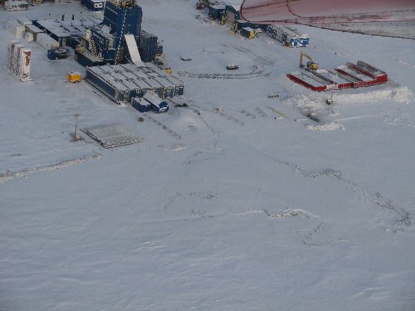 - Approximately 42,000 gallons (1,000 barrels) of fresh-water-based drilling mud were released to the ice drilling pad and adjacent snow-covered tundra. An unknown amount of gas was also released. Drilling mud is used to lubricate the drill, control formation pressure, and remove cuttings from the bore. No oil was spilled during the release event.