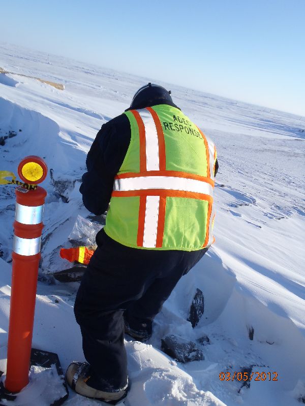 - On April 1, 2012, a group from the Kuukpikmiut Subsistence Oversight Panel, Inc. (KSOP) and from the village of Nuiqsut visited the site to see how the cleanup had progressed. The group was satisfied with the work that had been done and said that they did not believe that any further cleanup needed to be performed.