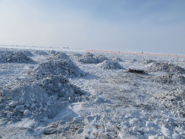 - Repsol hired a surveying contractor to assist in calculating the off-pad impacted area and the volume of the material released to the tundra. The contractor estimated that 21,114 bbls of down-hole material were released to the tundra during the initial blow-out. In addition, they calculated the total impacted area as 23.75 acres. An area of 16.76 acres of lightly-misted material was determined to be unrecoverable, and no cleanup occurred in this zone.
