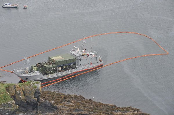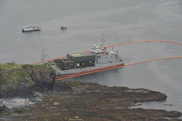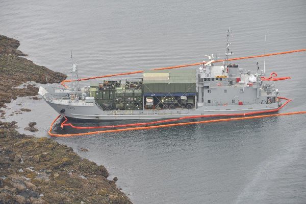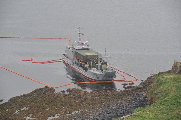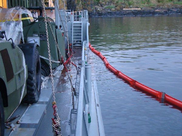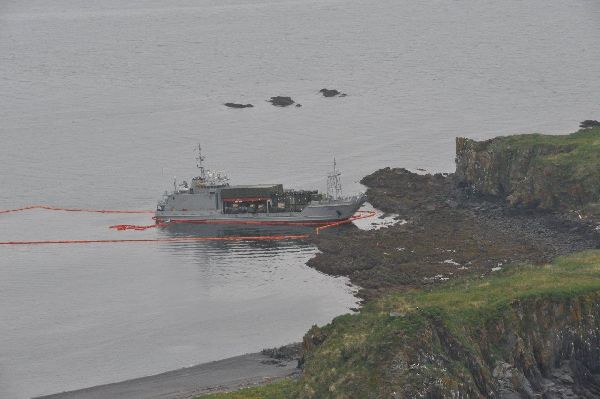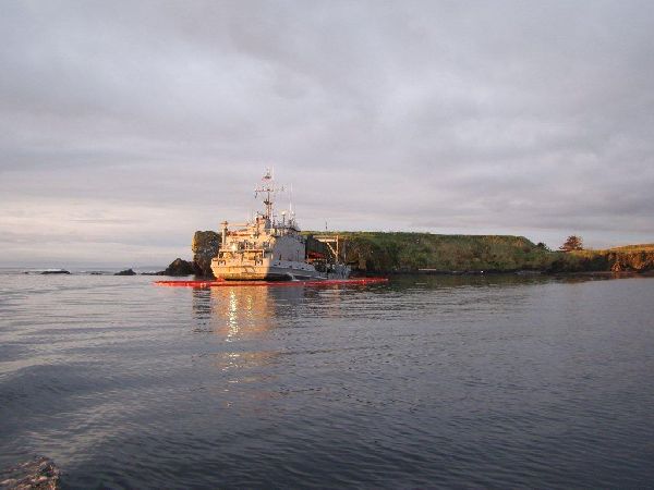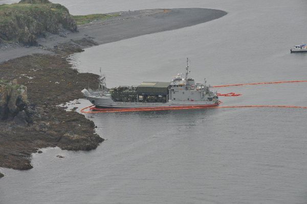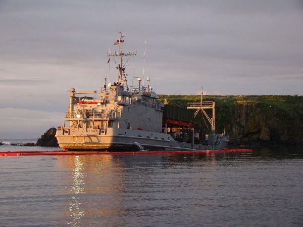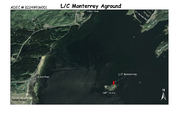 - Shortly after departing Kodiak on June 8, the Monterrey, a 174-foot landing craft, struck Discovery Rocks in Chiniak Bay, damaging the forward section of the vessel. As directed by the Coast Guard, the crew beached the vessel on Puffin Island to keep it from sinking. Fuel escaped from the vessel’s #3 and #4 starboard fuel tanks, which were ruptured by the initial collision. The Monterrey was carrying 42,000 gallons of fuel on board when they departed Kodiak. The Coast Guard is investigating the cause of the collision.