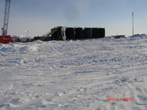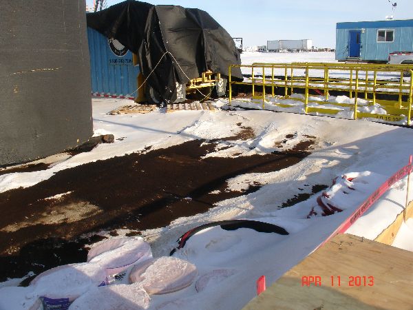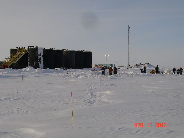 - Repsol contractor Weatherford International was conducting a flow back test on an exploratory well when the transfer hose used to connect the well to a 400-barrel (17,600-gallon) storage tank failed. The hose failed when it was under pressure causing the oil to spray out onto snow-covered tundra. In response to the hose rupture, the well was shut in. Additional product was released into the bermed and lined secondary containment cell when the fluids in the storage tank drained back through the ruptured hose. The majority of the product was contained within the secondary containment area, and a light to moderate mist over approximately 0.63 acres of snow covered tundra has been reported by Repsol.