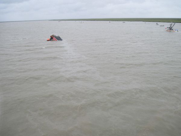 - The Lone Star’s crew reported to the Coast Guard that the anchor line struck the vessel’s transducer while they were anchoring the vessel, causing damage to the hull. The vessel began taking on water and capsized in 18 feet of water.