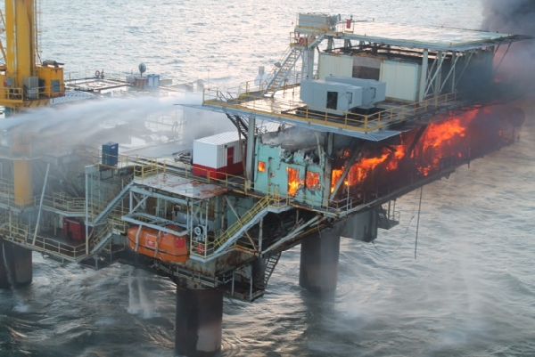 - No spill has been reported at this time. The fire was discovered by the crew on board the platform.