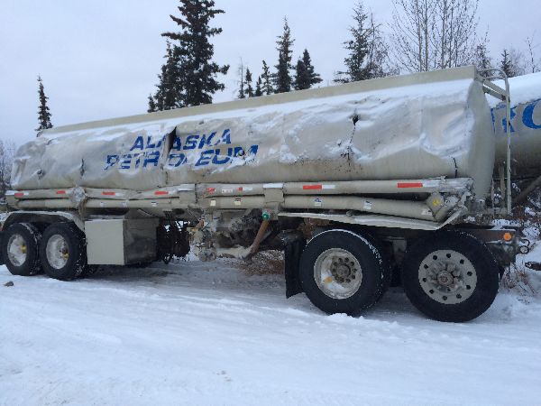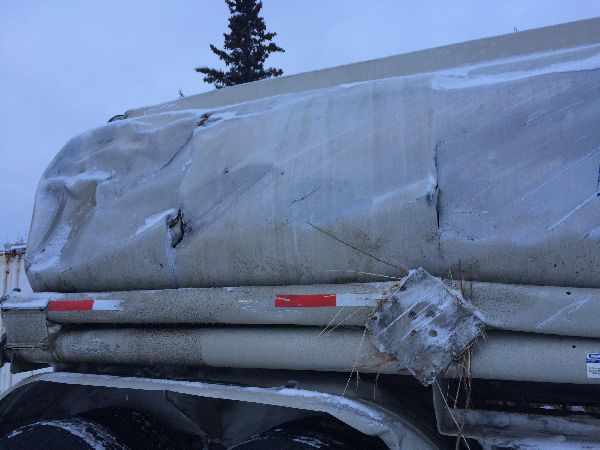 - Winter driving conditions caused the vehicle to veer far to the right, causing the second tanker trailer to rollover into the ditch.