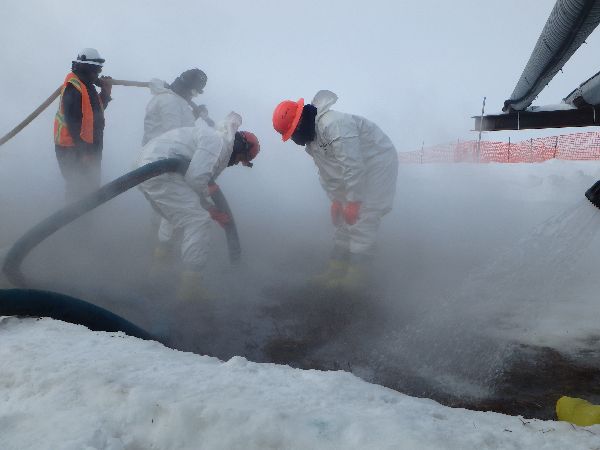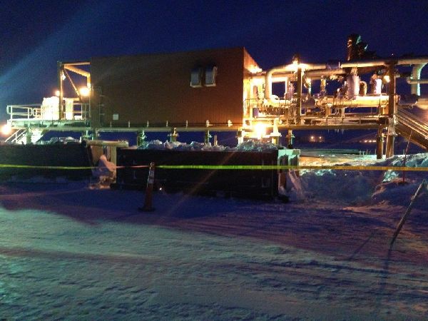 - A release from a 10" production line was observed at 7:50 a.m. on February 28, 2015. Alaska Department of Environmental Conservation's (ADEC's) After Hours Call service was notified at approximately 9:00 a.m. on the same day. ADEC responders were then contacted within 15 minutes.