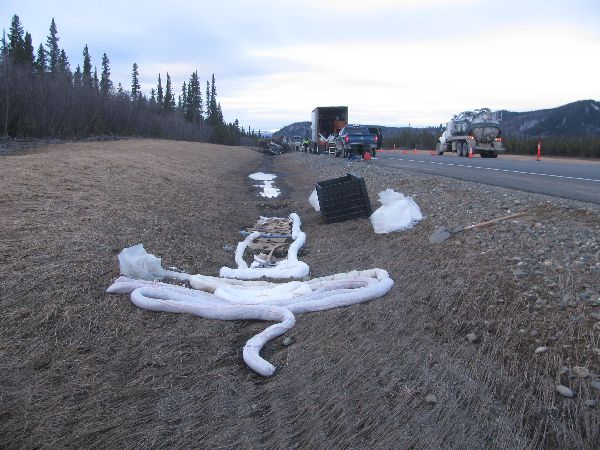 - Vehicle accident. A Big State tanker-trailer hauling JP-8 aviation fuel on the Parks Highway departed the roadway and rolled over, damaging the front tanker and causing the release.
