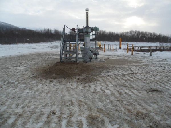 - The spilled product from the isolation fitting just north of TAPS Pump Station 10 is Alaska North Slope (ANS) crude oil. This is based on the laboratory sample results. The initial weep rate was about one drip per second. Oil had accumulated within the tar membrane/packing material that covered the coupling and dripped from the fitting once the soil surrounding the pipe was removed. When the tar membrane and tar were removed from the pipe, no active weeping was immediately observed. However, small dampened areas started to appear at a later time on the coupling surface, indicating weeping from the joint was still active.