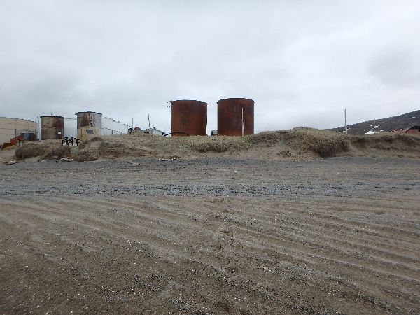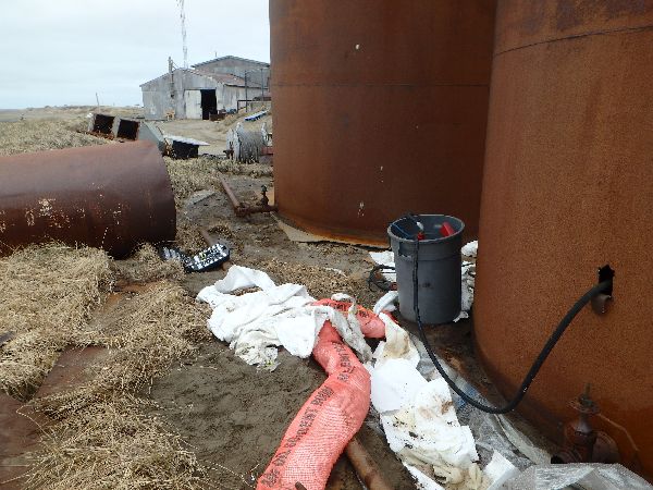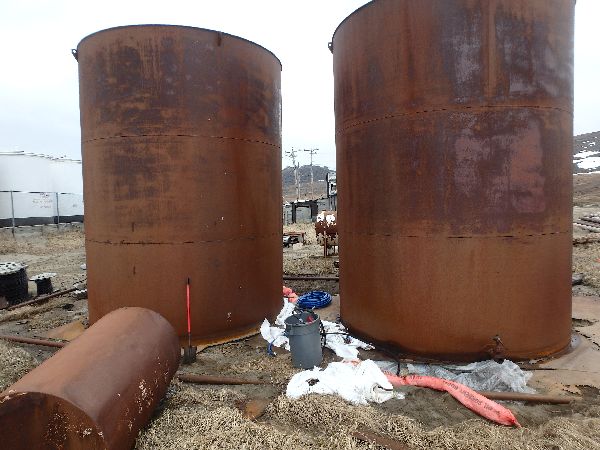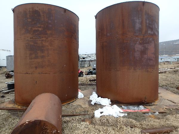 - Out-of-service aboveground storage tank (AST) along the Kingkinkgin Road in Wales, Alaska (Lat/Log: 65.608368, -168.091068).