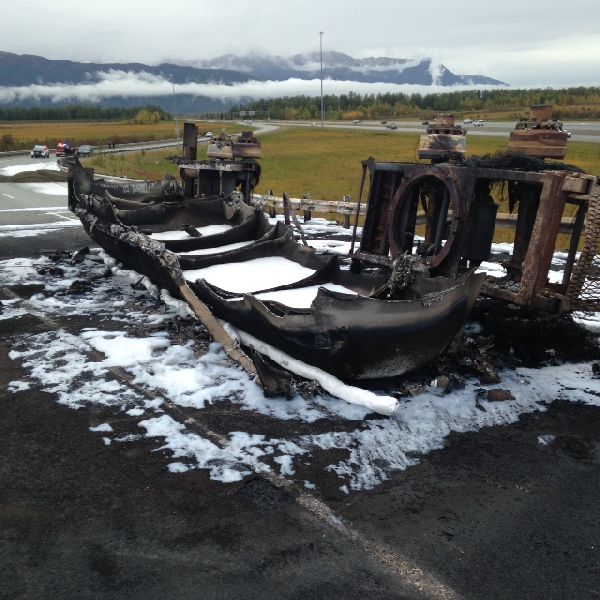 - Ken Barkley, Deputy Director for Matanuska Susitna (Mat-Su) Borough Emergency Services reported the tanker trailer was found unhitched and rolled over. The truck did not rollover with the tanker trailer. What caused the tanker trailer to become unhitched is unknown and is under investigation.