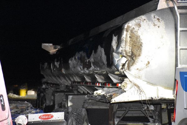 - A tractor-trailer departed the roadway (exact cause to be determined), rolled over, and an unknown object along the ditch line punctured the affected compartment of the main/lead trailer.