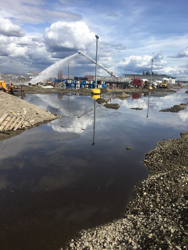 - The initial report stated that vegetable oil was the only product released, however after ADEC was able to investigate the site, various petroleum products were observed. At this time, a complete product list and the respective quantities are unknown. Fire suppressant water was used to control the burn, which added an unknown quantity of water to the product and vegetable oil slurry.