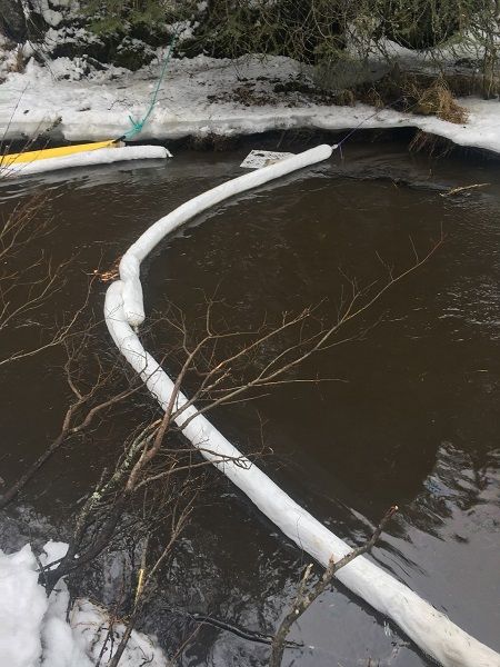 - Up to 300 gallons of diesel from two 150‐gallon saddle tanks and engine oils from the semi‐truck spilled into the creek as a result of the accident.