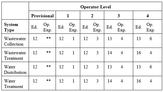 - (2 years of experience + 1 year of education = 3 years) This operator is eligible for water distribution certification level 2.