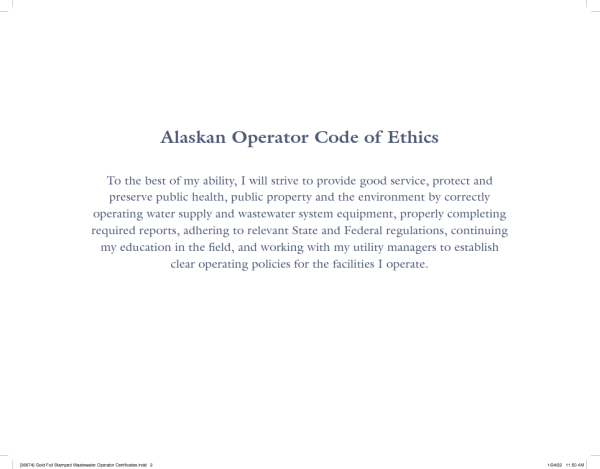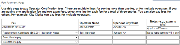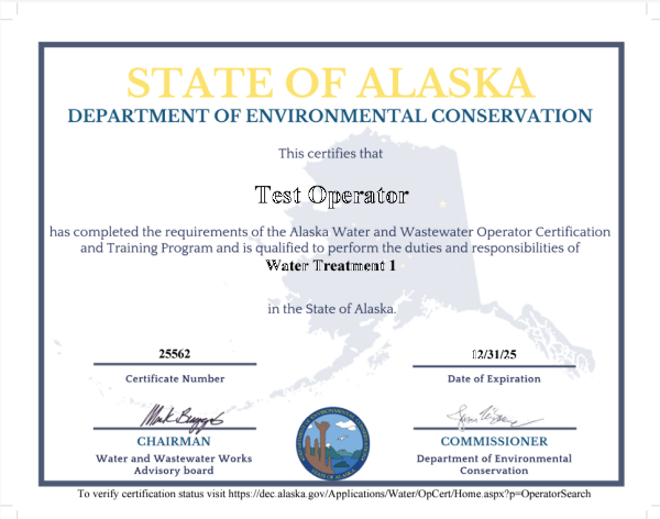 - Mail the form to the Operator Training and Certification Program with the $50 per certificate replacement fee. Checks should be made payable to the "State of Alaska."
