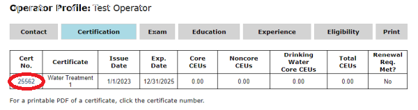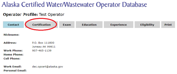 - Once you access your online operator profile by using your myAlaska credentials, click on the "Certification" tab.