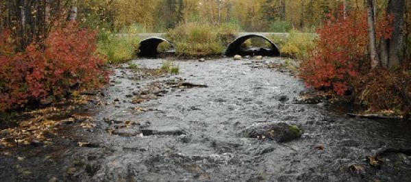 Cottonwood Creek as it flows under Surrey Road in the greater Wasilla area.