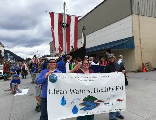 DEC and Marine Exchange staff participated in the Little Norway Festival parade in Petersburg to share information on clean harbors and clean boating practices.