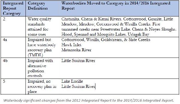 As a requirement of the Clean Water Act, every two years DEC reports on the condition of Alaska’s waters through the Integrated Water Quality Monitoring and Assessment Report (Integrated Report). Each report documents changes in waterbody condition from the previous report, for example if a previously polluted waterbody is now healthy. In November 2018 DEC released the combined 2014/2016 Integrated Report, which removed several waterbodies in the Fairbanks area from the impaired waters list. The Chena River, Chena Slough and Noyes slough were previously listed as impaired (polluted) from petroleum hydrocarbons, oil and grease, and for sediment in the 1990s. Noyes Slough was also listed as polluted from residues (debris or trash).